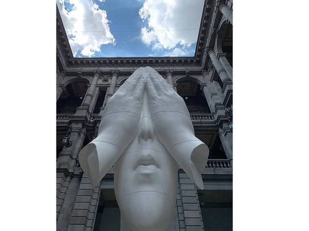 Con una medida de 7.5 metros de altura y dos toneladas de peso, la escultura del artista Jaume Plensa llega al Museo Nacional de Arte. Como protesta a la obsesión por levantar muros, Jaume Plensa afirma con su escultura que “nuestras manos son los grandes muros, que cuando los levantamos delante de nuestros ojos, son los más opacos que existen, porque no nos permiten ver lo que tenemos qué ver”.